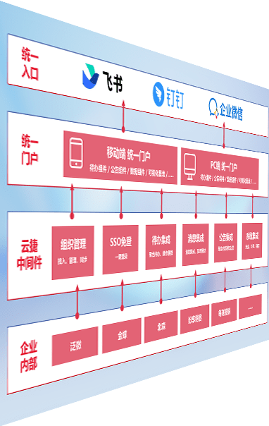 对协作平台提供支持服务,,支持企业应用与协作平台对接,,,包含组织同步、、消息集成、、、、待办集成等。。。支持目前主流的协作平台:钉钉、、、、企微和飞书。。